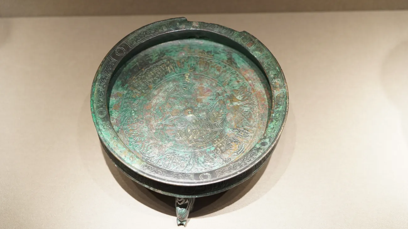 Isiriqdon bronzadan yasalgan bo‘lib, keng og‘izli kosacha va uni ko‘tarib turuvchi uchta tayanchga ega. Bu tayanch oyoqlar fil qiyofasida ishlangani bilan eʼtiborni tortadi va maxsus marosimlar uchun ishlatilgan qimmatli ashyo ekanligidan darak beradi.