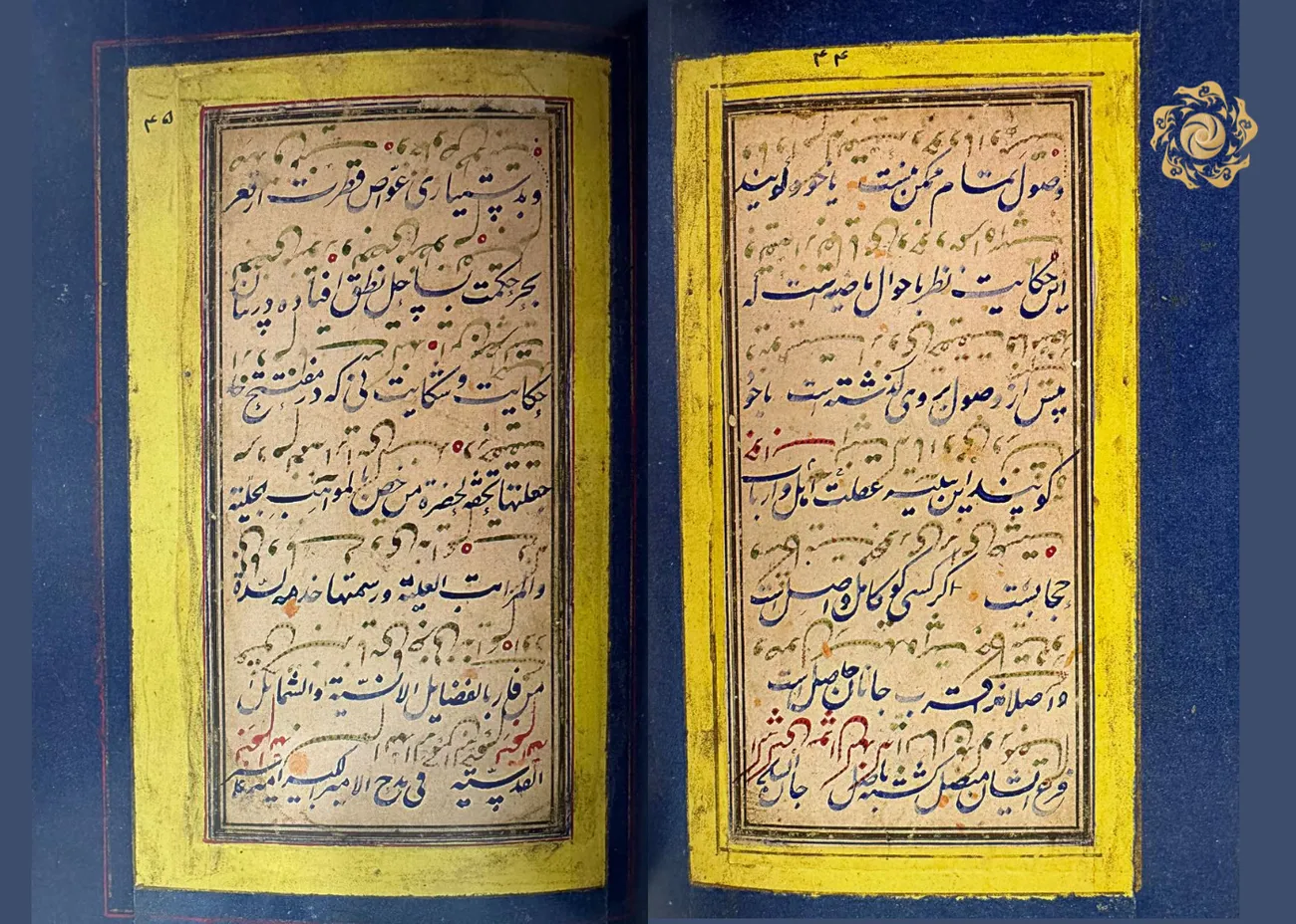 Qog‘oz, tilla suvi, siyoh, bo‘yoq. O‘lchami: 27 × 18 cm