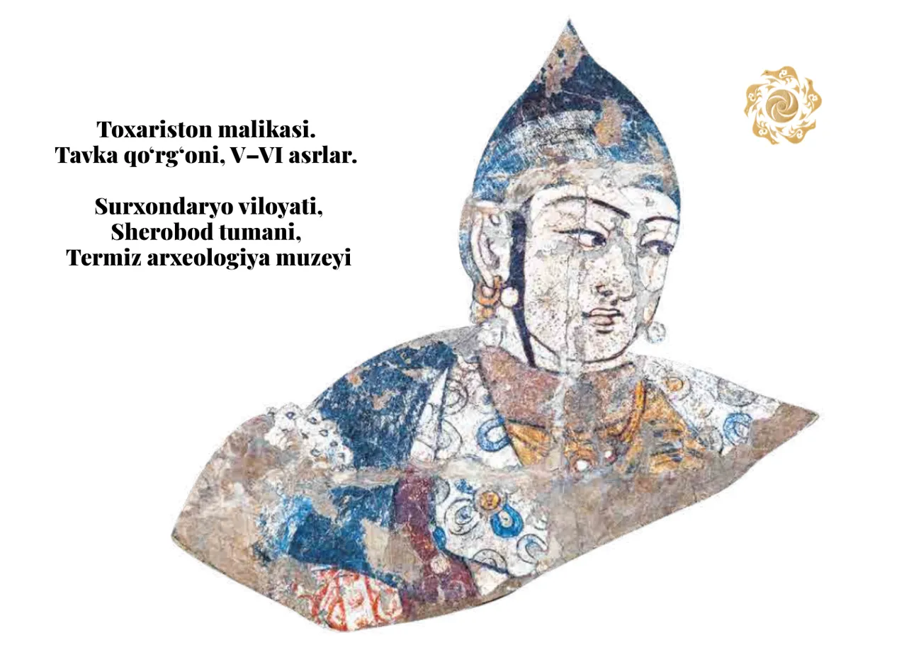 Demak, Tavka oyim V–VI asrlarda arablar kelguniga qadar, Eftalitlar yoxud G‘arbiy Turk xoqonligi davrida Toxaristonni boshqargan malikalardan biri bo‘lishi mumkinligi taxmin qilinadi. Suratda oq tanli, kulcha yuzli, qisiqko‘z, qorasoch zodagon ayol tasvirlangan. Bir qarashda uning turkiy qavmlarga mansub ekanini ilg‘ash qiyin emas. Malika chap tomonidagi nomaʼlum suhbatdoshiga maʼnoli boqib turibdi. Qora, uzun zulfi bo‘ynigacha tushgan, oltin baldog‘iga tegib turibdi. Boshida malikalarga xos bezakli (do‘ppiga o‘xshash) bosh kiyimi. Bo‘ynida ham ro‘molga o‘xshash oq tusli guldor mato tashlab olgan. Orqa tomondagi moviy fonda oq rangli nomaʼlum dumaloqsimon figura ko‘rinadi. Malika kechki payt ochiq osmon ostida o‘tirgandek tasavvur uyg‘otadi.